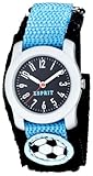 Gehäuse matt-silber mit Edelstahlboden, Mineralglas, wasserdicht geprüft bis 3 bar, hellblaues, robustes Textilarmband mit Fussballemblem, extralanger Klettverschluss, bequeme Größenanpassung, präzises Quarzwerk, Zifferblatt schwarz, Leuchtzeiger, roter Sekundenzeiger, kinderleichte Lesbarkeit, im Set mit Schlüsselanhänger Karabiner Lesen Sie mehr