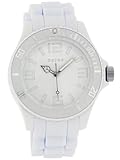 Gehäusedurchmesser : 42 mm * Gehäusehöhe : 13 mm * Anzeige : Stunde, Minute und Sekunde central * Linksdrehende Lünette mit weissem Kranz * Weisses Ziffernblatt und weisse Indexe * Wassergeschützt (2 Bar Prüfdruck nach DIN-Norm 8310) * Citizen/Miyota Quarzwerk * Weisses Silikonband mit Dornschliesse * Gesamtlänge : ca. 24,5 cm Lesen Sie mehr