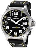 This piece by TW Steel offers a stainless steel case and black leather bracelet. The black dial includes a date window. Finally, this beautiful timepiece features a precise quartz movement and is water resistant up to 50 meters Lesen Sie mehr