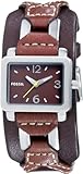 FOSSIL Uhr JR034, gib Deinem Lieblingsoutfit den angesagten modern-vintage Touch. Die analoge Edelstahluhr hat ein braunes Zifferblatt mit gelbem Sekundenzeiger, ein cleanes, rechteckiges Gehäuse und ein doppeltes Lederband mit Ziersteppung und Metallbeschlägen.
