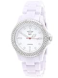 DIE NEUESTE KOLLEKTION! Das Armband und das Gehäuse sind aus leichtem weiß/fliederfarbenen Kunststoff gefertigtund somit ist sie besonders angenehm zu tragen! geschützt durch kratzfestes Mineralglas weißes Zifferblatt mit Logoimprint Gehäuse besetzt mit einem versilberten Ring welcher mit 120 funkelnden Strasssteinen verziert ist. versilberte Stunden,- und Minutenzeiger (fluroszierend) Sekundenzeiger in Rot (fluroszierend) präzises, analoges Quartzuhrwerk einfacher Verschluß per Faltschließe zu 100% Nickelfrei inklusive Aufbewahrungsbox Gehäusemaße: Breite x Höhe x Tiefe 3,8 cm x 5,0 cm x 1,1 cm Armbandmaße: Breite = ca. 1,8 cm Umfang = 20,0 cm (Kürzbar) Lesen Sie mehr